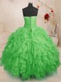 Home >  Quinceanera Dresses >  15 Quinceanera Dresses > Noble Green Ball Gowns Tulle and Sequined Sweetheart Sleeveless Beading Floor Length Lace Up 15 Quinceanera Dress