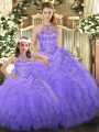 Noble Lavender Lace Up Quinceanera Dresses Beading and Ruffles Sleeveless Floor Length
