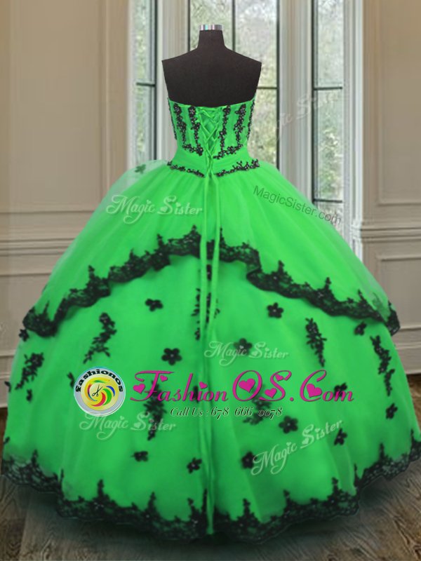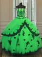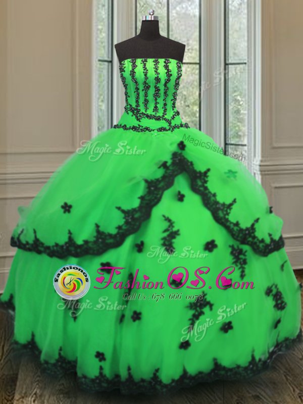 Home >  Quinceanera Dresses >  In Stock Quinceanera Dresses > Noble Organza Strapless Sleeveless Lace Up Beading and Embroidery Quinceanera Gowns in Green