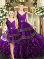 Noble Purple Three Pieces Beading and Embroidery and Ruffles Quinceanera Gown Backless Organza Sleeveless Floor Length