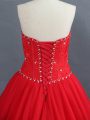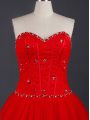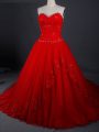 Noble Red Ball Gowns Sweetheart Sleeveless Tulle Brush Train Lace Up Appliques Wedding Dress