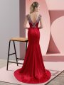 Noble Red Cap Sleeves Beading Backless Prom Dress