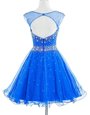 Noble Scoop Apple Green Sleeveless Beading Mini Length Evening Dress