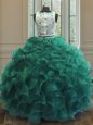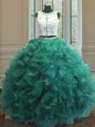 Noble Scoop Appliques and Ruffles Ball Gown Prom Dress Turquoise Clasp Handle Sleeveless Floor Length
