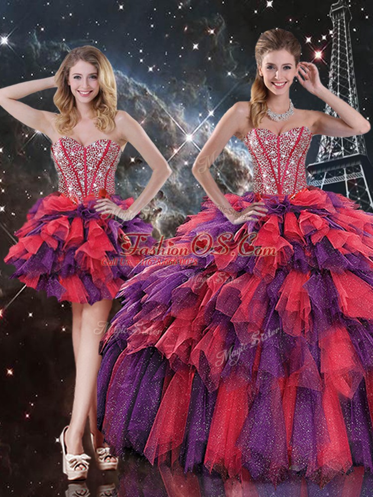 Home >  Quinceanera Dresses >  Detachable Quinceanera Skirts > Noble Sleeveless Beading and Ruffles and Ruffled Layers Lace Up Ball Gown Prom Dress
