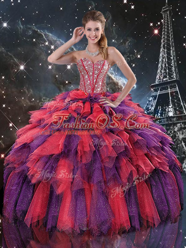 Noble Sleeveless Beading and Ruffles and Ruffled Layers Lace Up Ball Gown Prom Dress