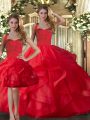 Noble Three Pieces Quinceanera Dress Red Halter Top Tulle Sleeveless Floor Length Lace Up