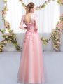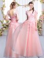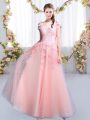 Noble Tulle Cap Sleeves Floor Length Bridesmaid Dress and Beading and Appliques