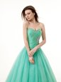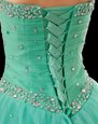 Noble Turquoise A-line Chiffon Sweetheart Sleeveless Beading and Ruching Floor Length Lace Up Sweet 16 Quinceanera Dress