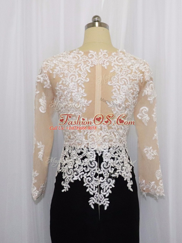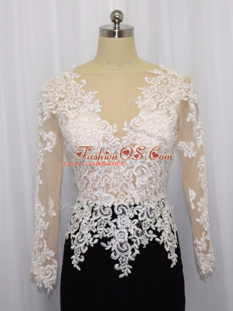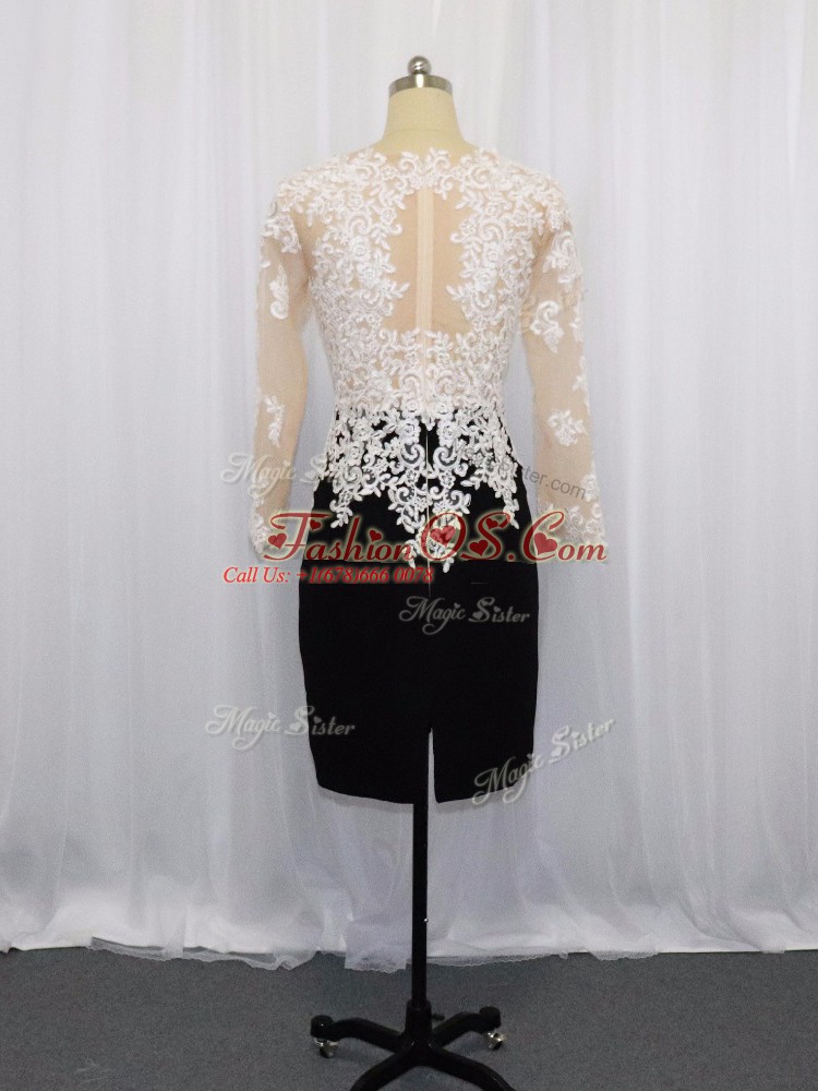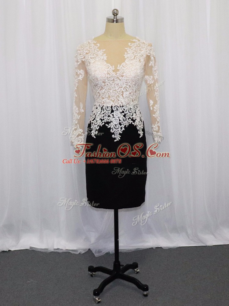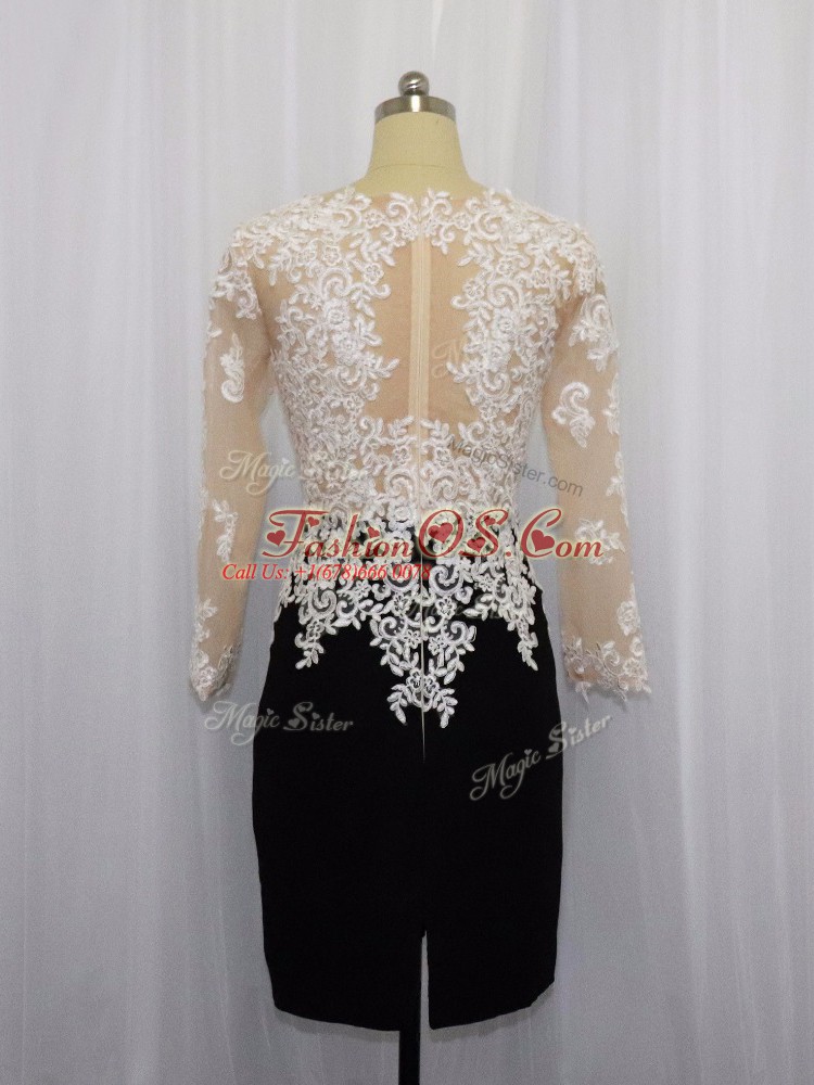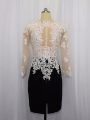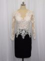 Noble White And Black Long Sleeves Lace Mini Length Dress for Prom