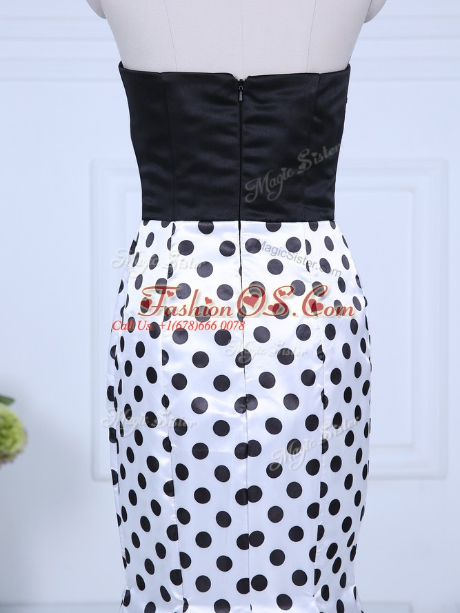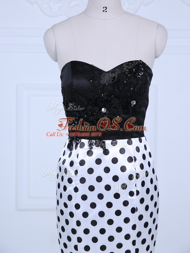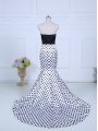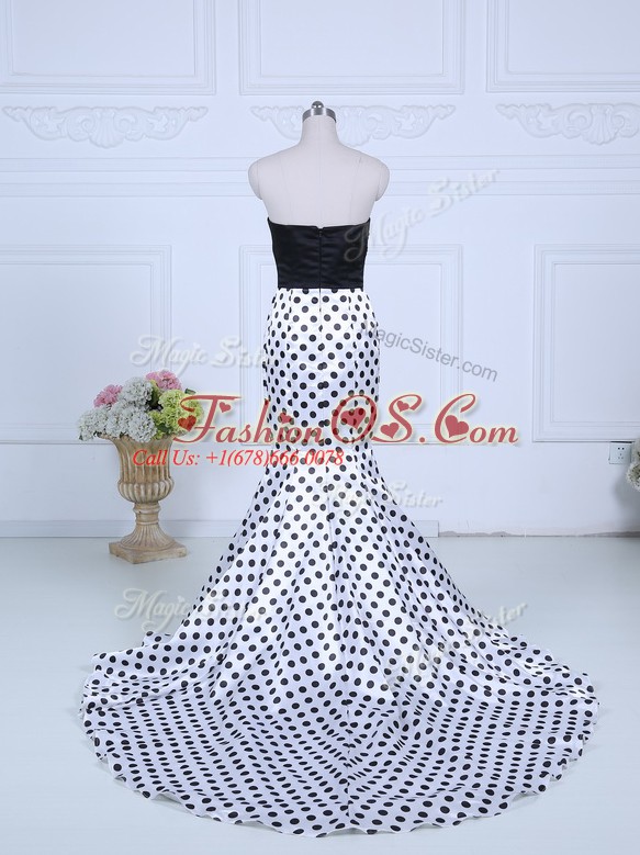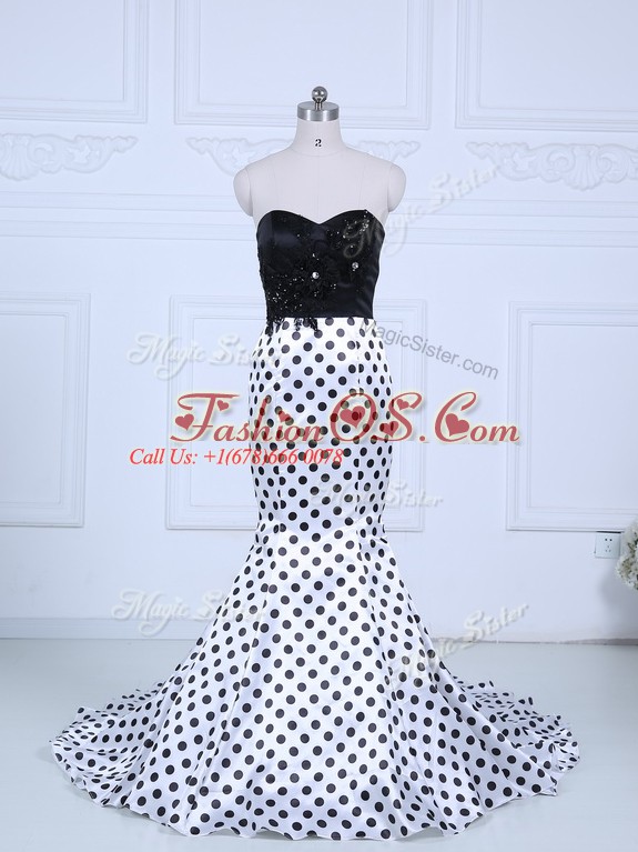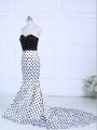 Noble White And Black Printed Zipper Sweetheart Sleeveless Celebrity Style Dress Brush Train Lace