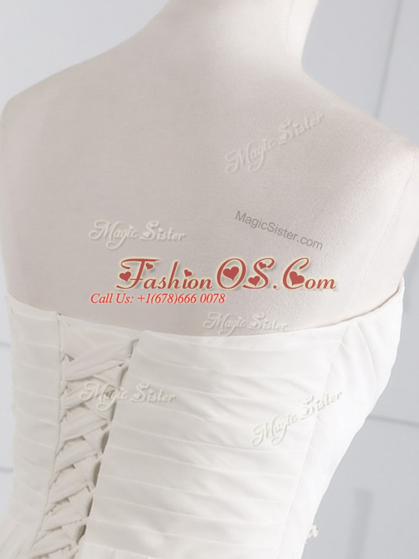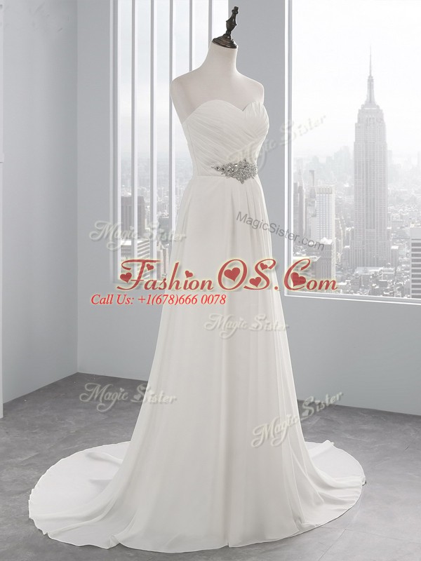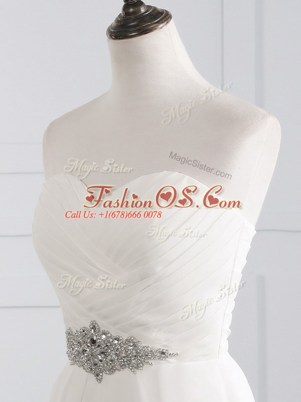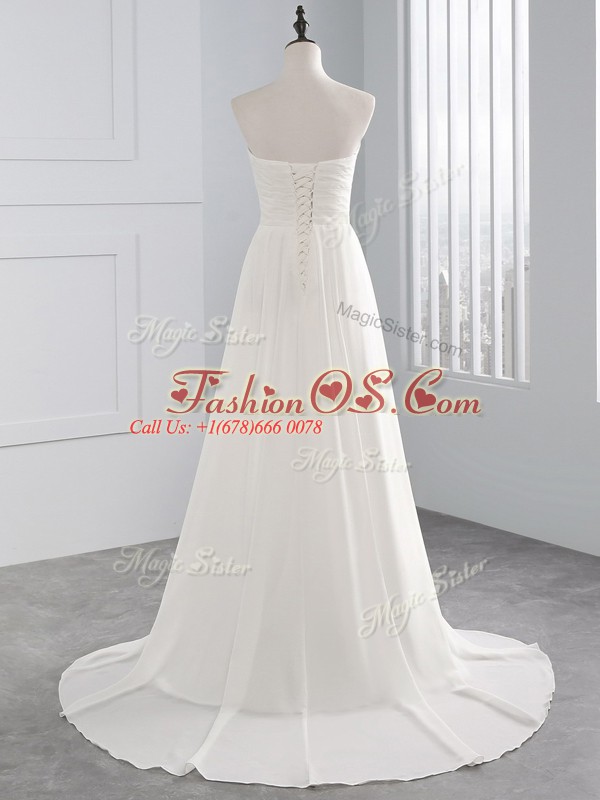 Noble White Sleeveless Chiffon Brush Train Lace Up Wedding Gowns for Beach and Wedding Party