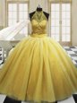 Home >  Quinceanera Dresses >  Perfect Quinceanera Dresses > Noble Yellow Lace Up 15th Birthday Dress Beading Sleeveless With Train Sweep Train