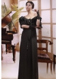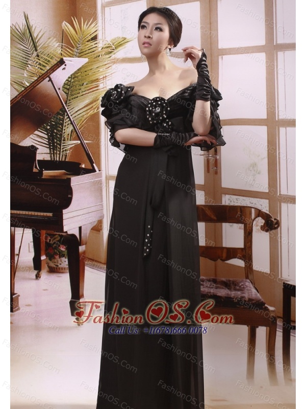 Off Shoulder Half Sleeves Black Chiffon Beaded Formal Mother of the Bride Dress
