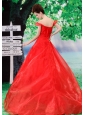 Home >  Prom Dresses >  Cheap Prom Dresses > Off Shoulder Neckline Red A-line Organza Custom Made 2013 Prom Gowns With Court Train