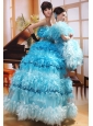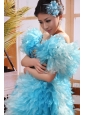 Heads will pathetically moon over you for months on end in this elegant dress. This stylish prom gown features off the shoulder, assumingly the flowers used in cheering squad. The fitted bodice is encrusted with paillette and applique. The pieces of ruffles of skirt will add to its fullness. When you dress in the dress, you will look sweet and a baby doll.