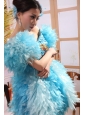 Home >  Prom Dresses >  Unique Prom Dresses > Off Shoulder Paillette Over Skirt Organza Ruffles Short Sleeves Stylish Hottest Prom Gowns