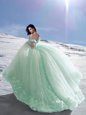 Off the Shoulder Apple Green Sleeveless Court Train Hand Made Flower Vestidos de Quinceanera