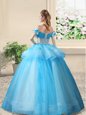 Home >  Quinceanera Dresses >  Perfect Quinceanera Dresses > Off the Shoulder Baby Blue Organza Lace Up Quinceanera Gowns Sleeveless Floor Length Beading and Appliques