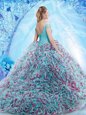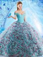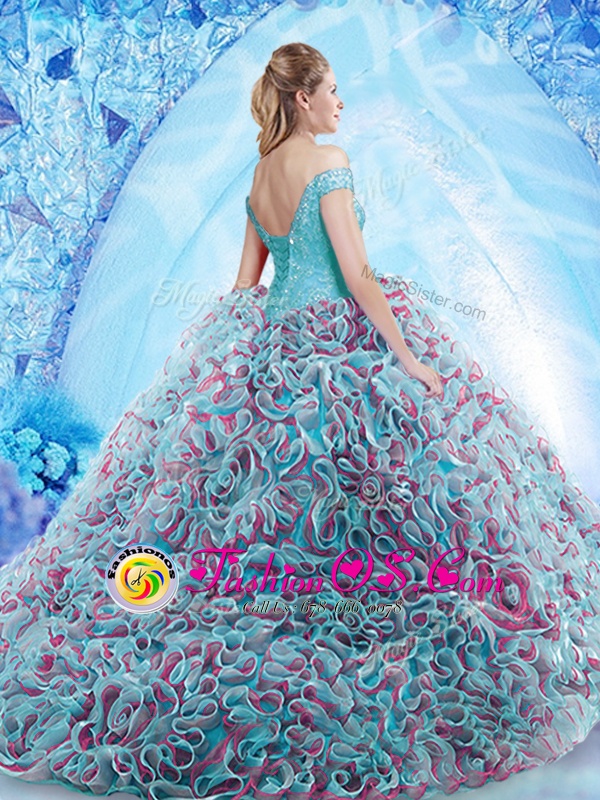 Off the Shoulder Backless Multi-color Sleeveless Court Train Beading and Appliques and Ruffles Sweet 16 Dress