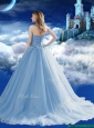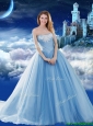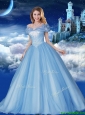 Off the Shoulder Brush Train Applique Quinceanera Gown with Removable Cap Sleeves