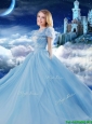 Home >  Quinceanera Dresses >  Popular Quinceanera Dresses > Off the Shoulder Brush Train Applique Quinceanera Gown with Removable Cap Sleeves
