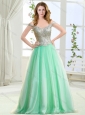 Off the Shoulder Cap Sleeves Apple Green Evening Dress with Beading and Sequins