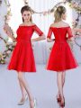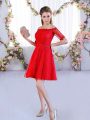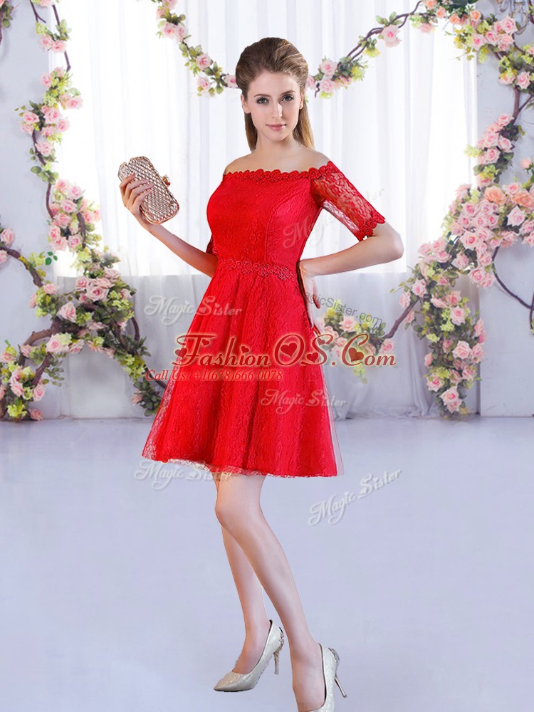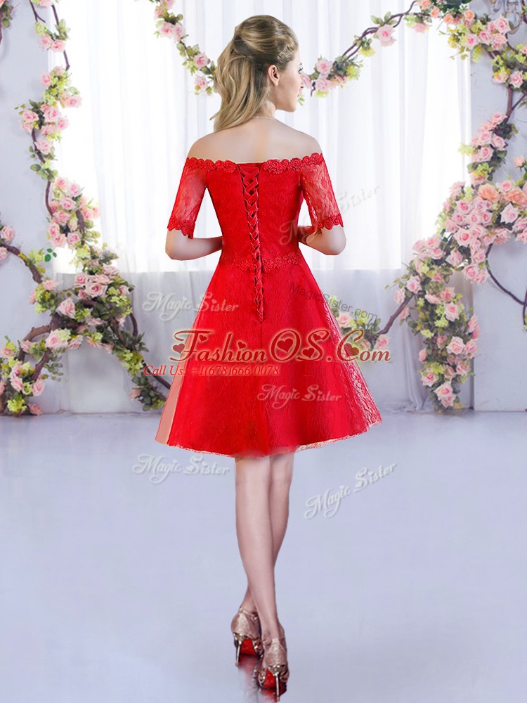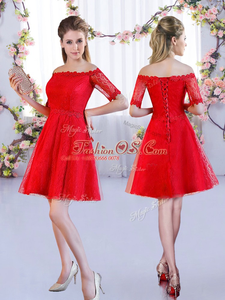 Off The Shoulder Half Sleeves Lace Up Quinceanera Court Dresses Red Lace
