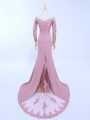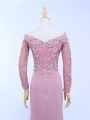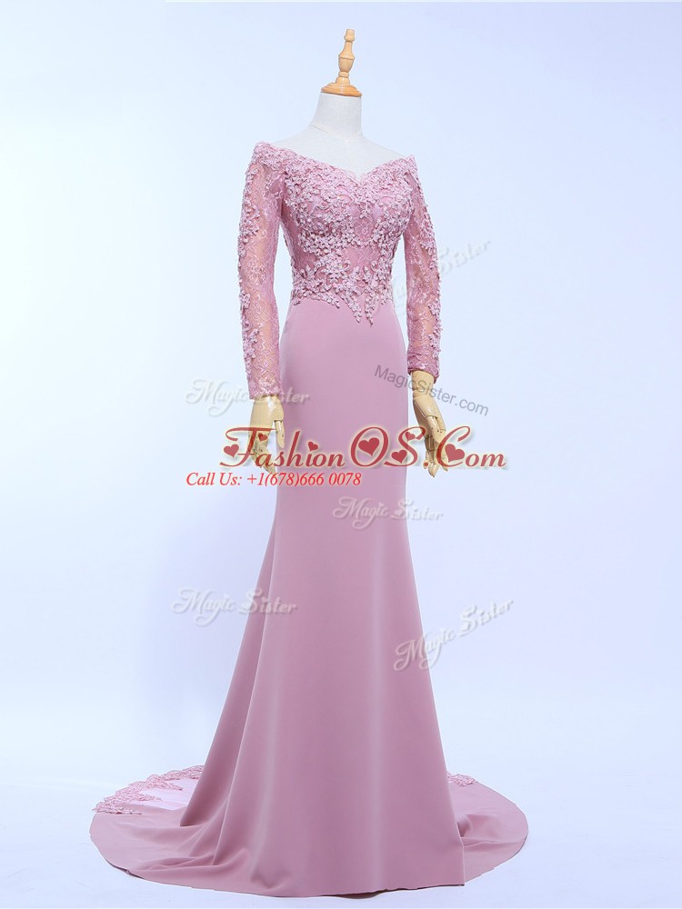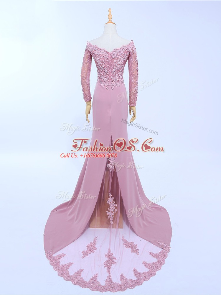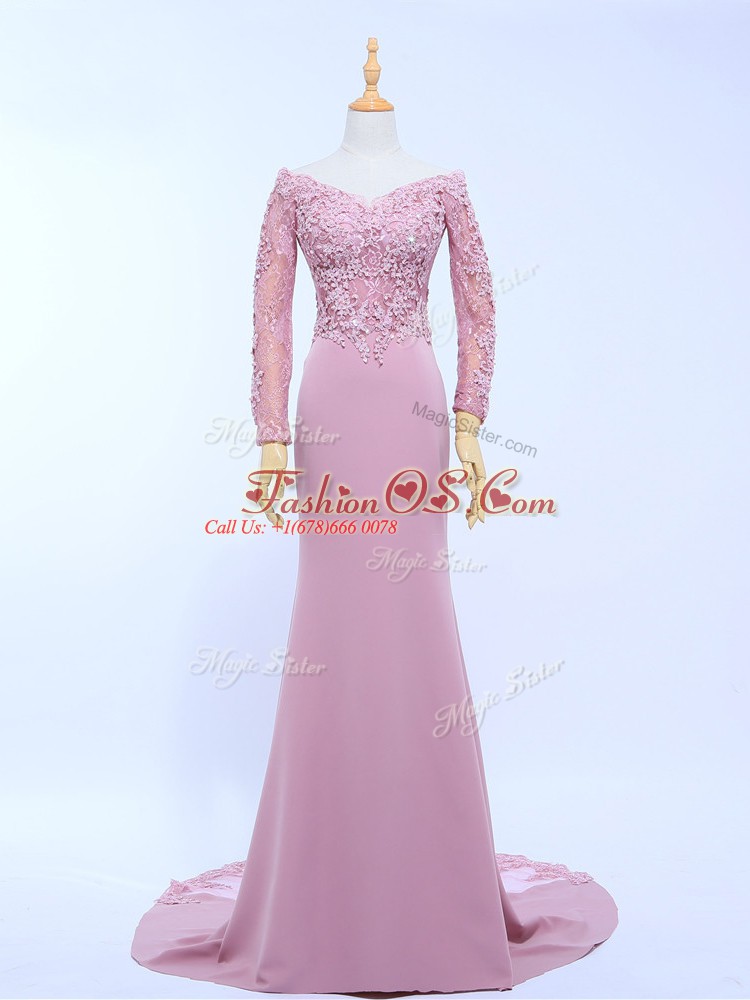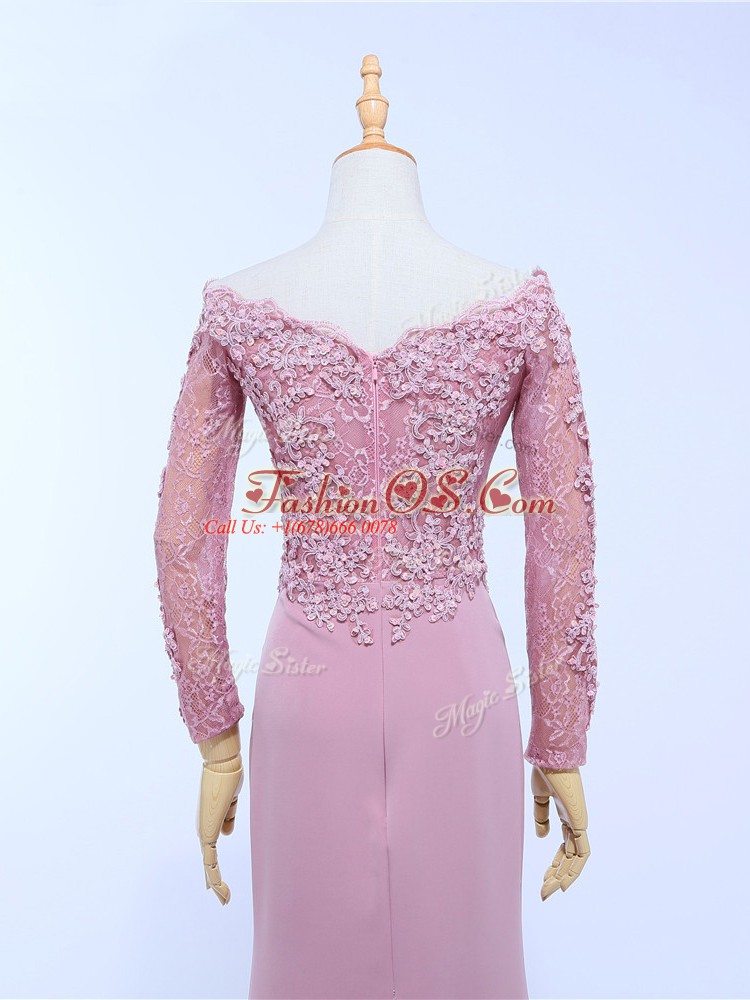 Off The Shoulder Long Sleeves Brush Train Zipper Mother Of The Bride Dress Lilac Chiffon