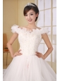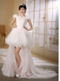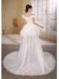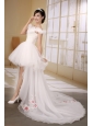 Off The Shoulder Necklien High-low Wedding Dress With Appliques Decorate