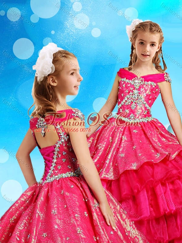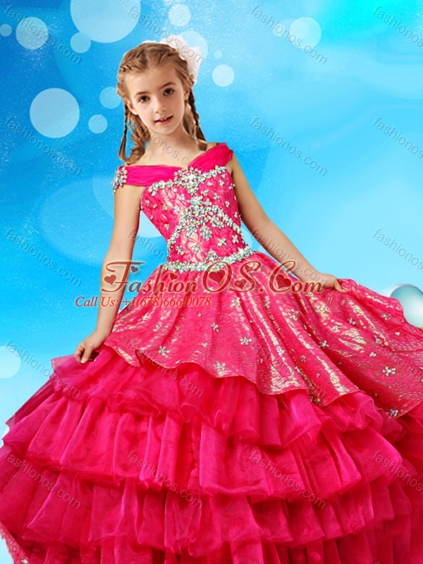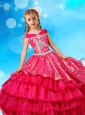Off the Shoulder Red Little Girl Pageant Dress in Organza and Sequins