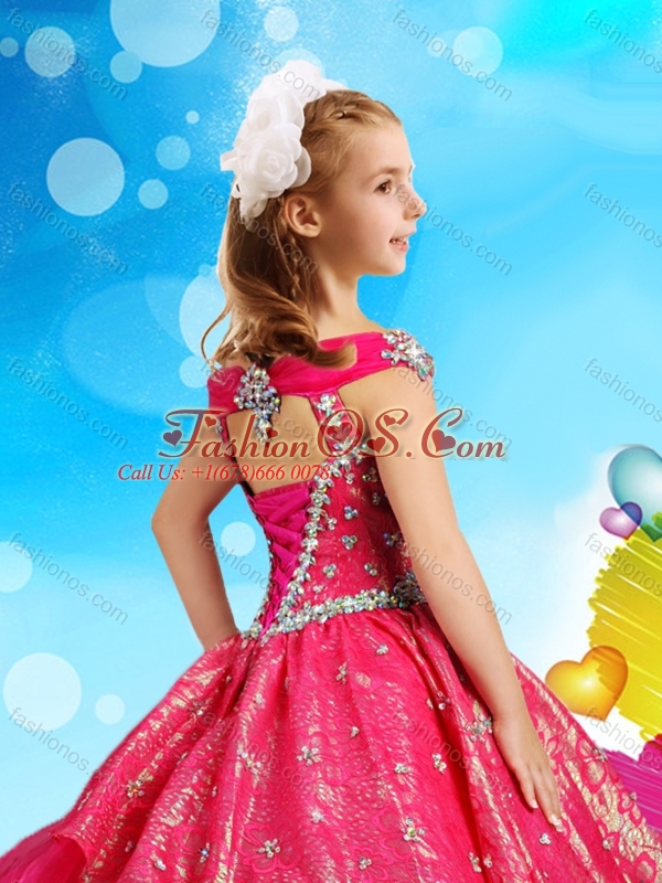 Home >  Special Occasion Dresses >  Mini Quinceanera Dresses > Off the Shoulder Red Little Girl Pageant Dress in Organza and Sequins
