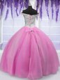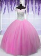 Off the Shoulder Short Sleeves Beading Lace Up Quinceanera Gown