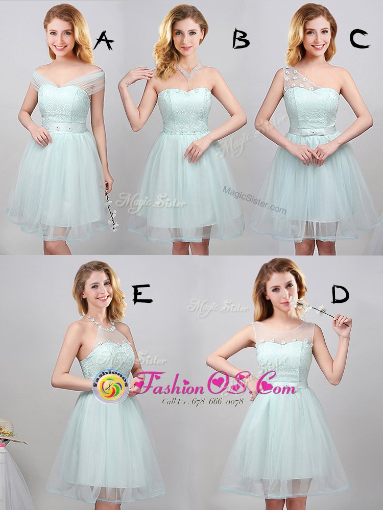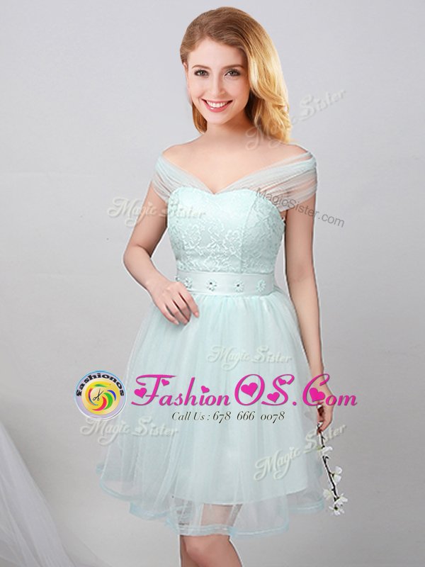 Off the Shoulder Short Sleeves Lace and Appliques and Belt Lace Up Dama Dress