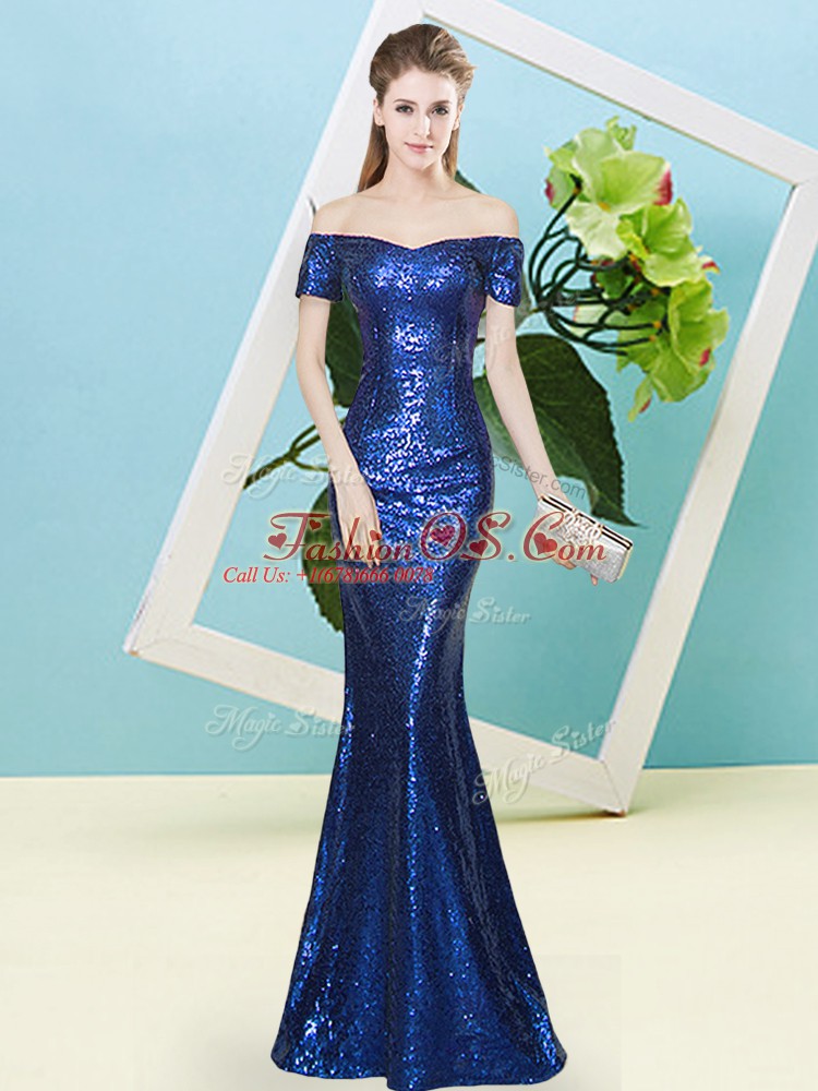 Off The Shoulder Short Sleeves Sequined Prom Party Dress Sequins Zipper