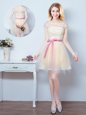 Off the Shoulder Short Sleeves Tulle Mini Length Lace Up Dama Dress for Quinceanera in Lavender for with Lace and Appliques and Belt