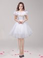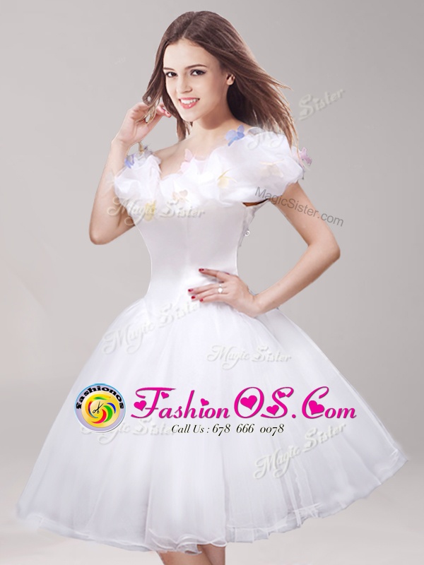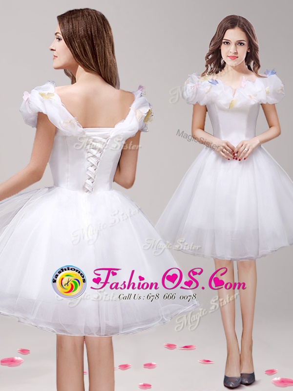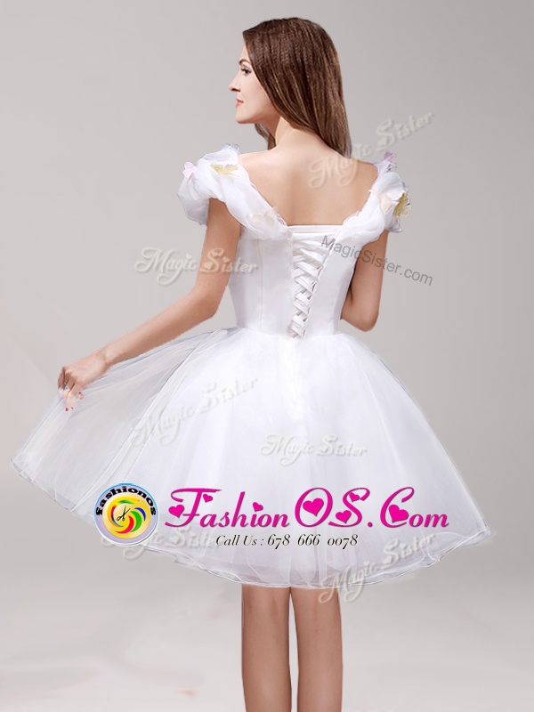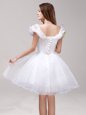 Home >  Prom Dresses >  Perfect Prom Dresses > Off the Shoulder Sleeveless Appliques and Ruffles Lace Up Prom Evening Gown