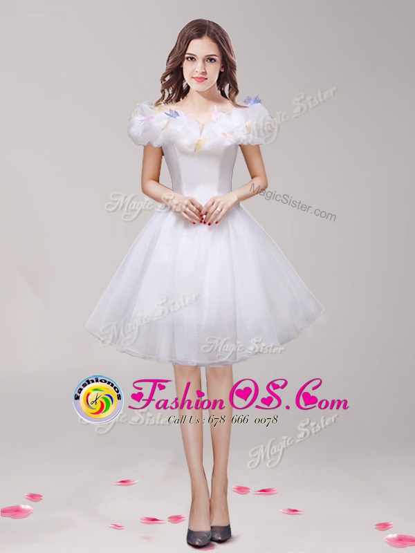 Off the Shoulder Sleeveless Appliques and Ruffles Lace Up Prom Evening Gown