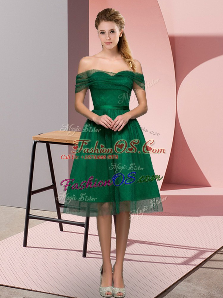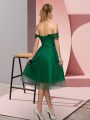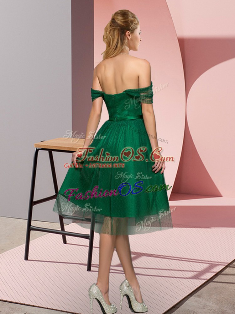 Off The Shoulder Sleeveless Evening Dress Tea Length Beading and Lace Green Tulle