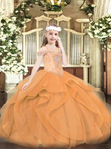 Home >  Special Occasion Dresses >  Beautiful Kids Pageant Dresses > Off The Shoulder Sleeveless Lace Up Glitz Pageant Dress Orange Tulle