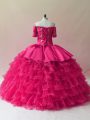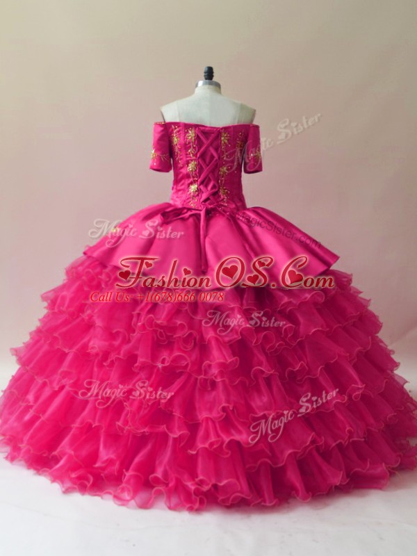 Off The Shoulder Sleeveless Lace Up Quinceanera Gown Fuchsia Organza