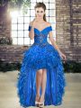 Off The Shoulder Sleeveless Organza Quinceanera Dress Beading and Ruffles Lace Up