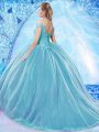 Off The Shoulder Sleeveless Quinceanera Gown Brush Train Beading Lilac Organza