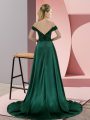 Home >  Prom Dresses >  Gorgeous Prom Dresses > Off The Shoulder Sleeveless Sweep Train Backless Evening Dress Green Elastic Woven Satin
