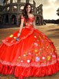 Off The Shoulder Sleeveless Sweet 16 Quinceanera Dress Floor Length Embroidery and Bowknot Red Taffeta