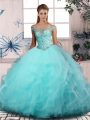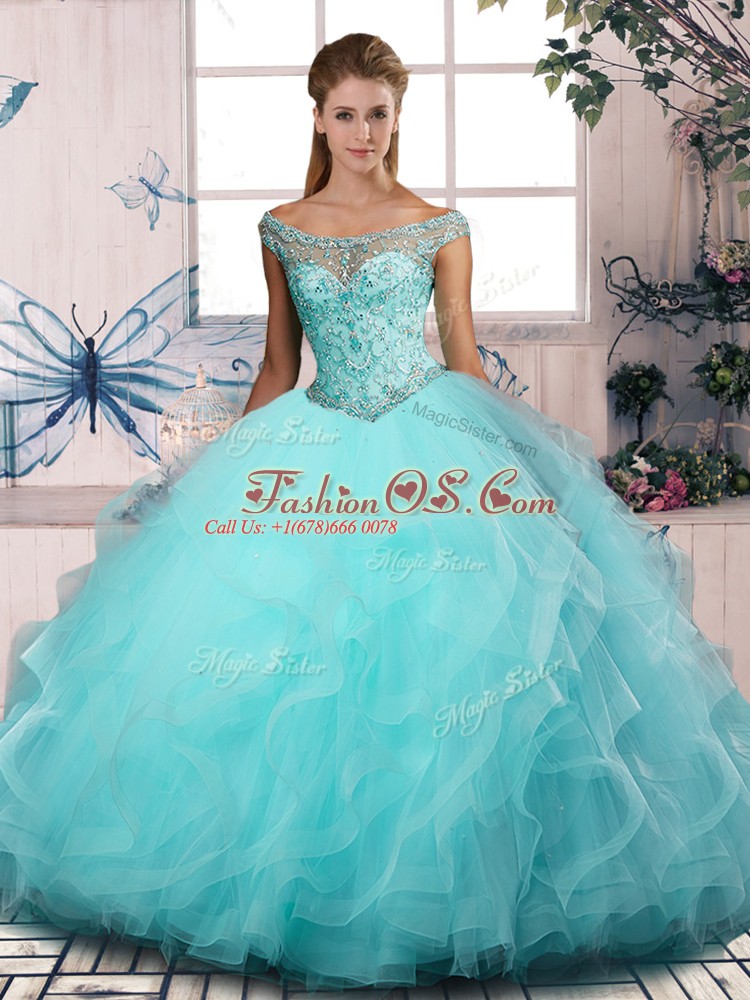 Off The Shoulder Sleeveless Tulle Quinceanera Gown Beading and Ruffles Lace Up