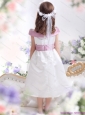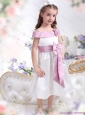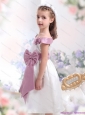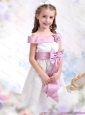 Off The Shoulder White Little Girl Pageant Dresses with Flower and Bowknot