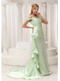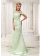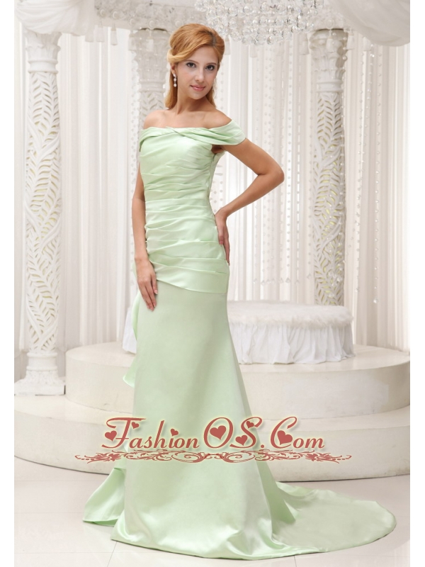 Off The Shoulder Yellow Green Mother Of The Bride Dress For 2013 Taffeta and Brush Train