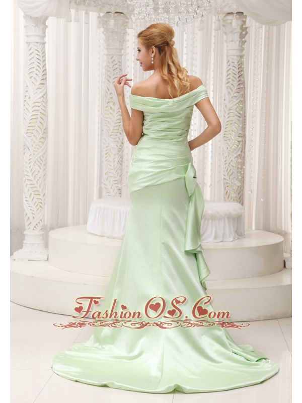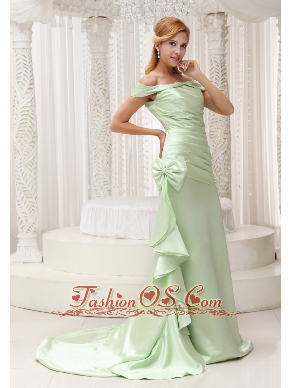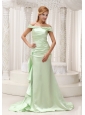 Home >  Special Occasion Dresses >  Mother of the Bride Dresses > Off The Shoulder Yellow Green Mother Of The Bride Dress For 2013 Taffeta and Brush Train