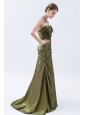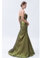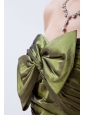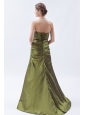 Olive Green A-line / Princess Strapless Brush Train Taffeta Ruch and Bow Bridesmaid Dress